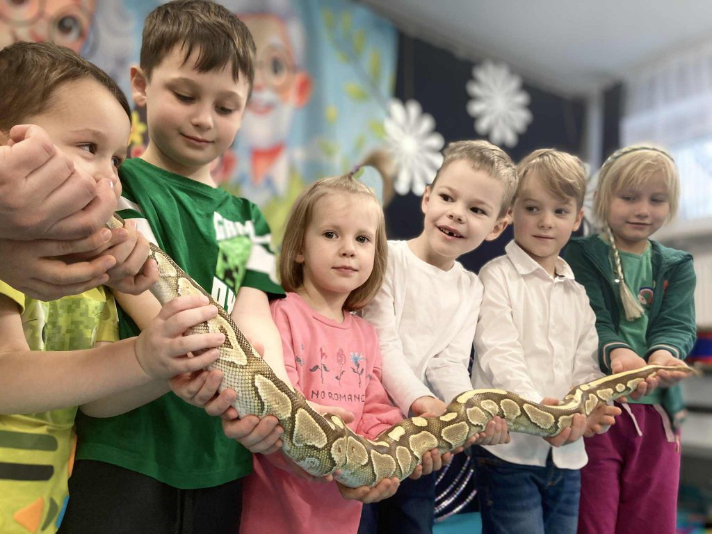 Przedszkolaki miały okazję zobaczyć prawdziwe pszczoły w specjalnym prezenterze, powąchać naturalny pszczeli wosk, zrobić świeczkę i przymierzyć